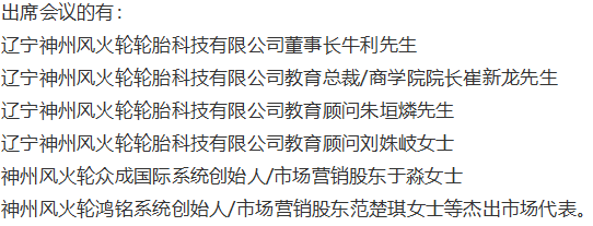 神州風(fēng)火輪為全國(guó)意向代理商提供了一次財(cái)富機(jī)遇,同時(shí)也進(jìn)一步布局全國(guó)市場(chǎng)。遼寧神州風(fēng)火輪輪胎科技有限公司教育顧問(wèn)朱垣燐先生代表公司與意向代理商進(jìn)行簽約儀式,本次會(huì)議共有11位高瞻遠(yuǎn)矚的意向代理商完成簽約,成功鎖定12城。通過(guò)這次會(huì)議意向代理商們對(duì)神州風(fēng)火輪有了更深入的了解,對(duì)產(chǎn)品更加放心,希望后期能夠合作共贏。