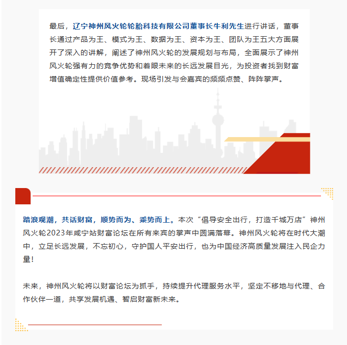 【咸寧站】“倡導(dǎo)安全出行,打造千城萬店”神州風(fēng)火輪智能防扎自修復(fù)輪胎財富論壇
