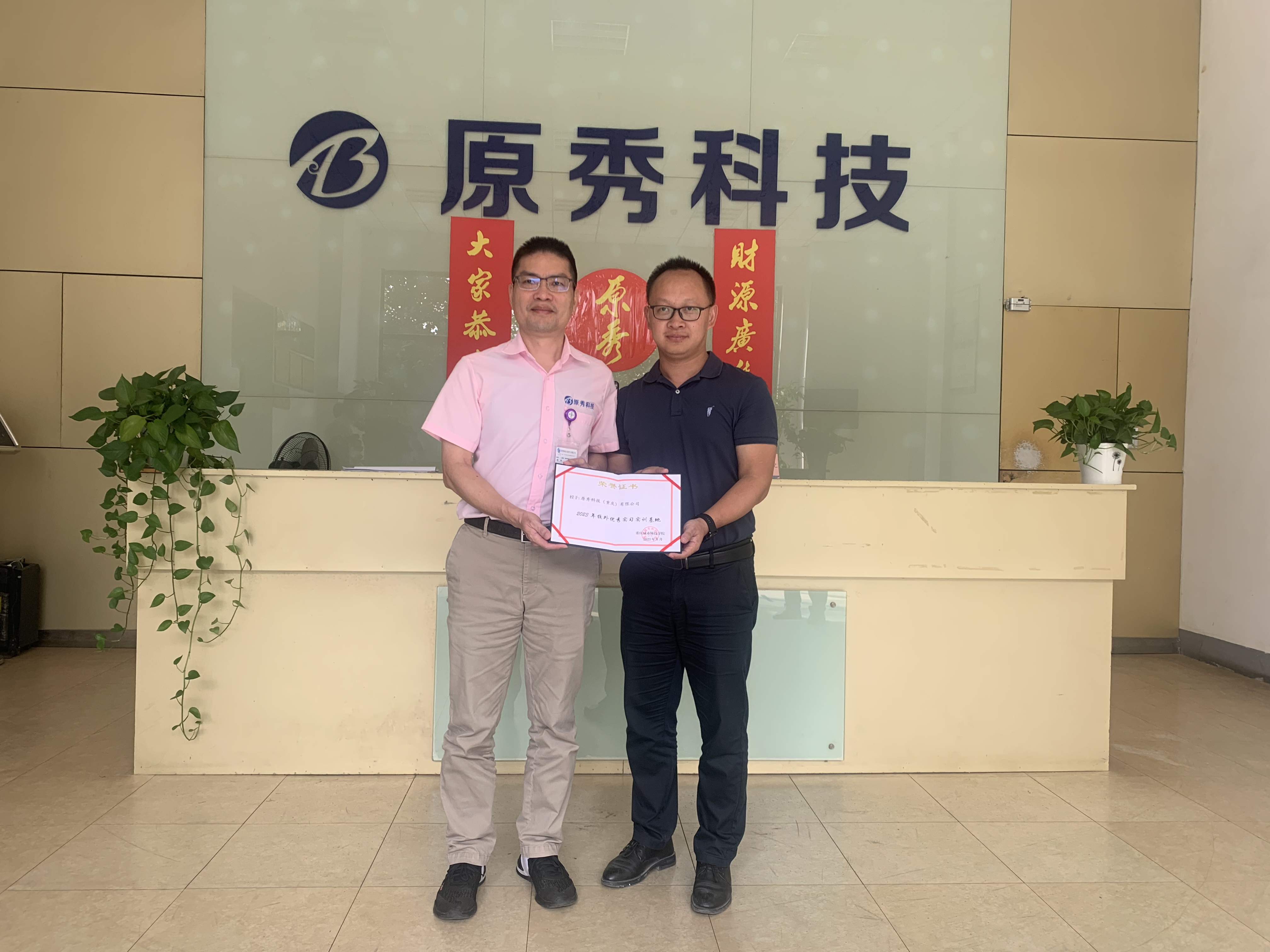 吉春元介紹了學(xué)校的發(fā)展歷程與辦學(xué)特色,他表示能與原秀這樣優(yōu)秀的公司進(jìn)行深度合作,無(wú)疑是對(duì)學(xué)院以往辦學(xué)成績(jī)、辦學(xué)實(shí)力的充分肯定。劉洪鵬表示雙方將在合作中實(shí)現(xiàn)優(yōu)勢(shì)互補(bǔ)、資源共享,從而進(jìn)一步增強(qiáng)學(xué)校發(fā)展的后勁和活力,共建實(shí)習(xí)實(shí)訓(xùn)基地,有利于推動(dòng)學(xué)生高質(zhì)量就業(yè),公司高質(zhì)量發(fā)展,共創(chuàng)校企共贏新局面。隨后,校方領(lǐng)導(dǎo)吉春元、劉洪鵬授牌我司“優(yōu)秀校外實(shí)習(xí)實(shí)訓(xùn)基地”及頒發(fā)“優(yōu)秀實(shí)訓(xùn)基地榮譽(yù)證書(shū)”。