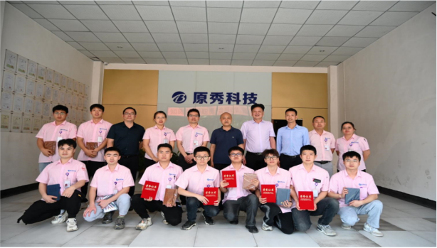 6月6日上午,我司與重慶城市科技學(xué)院的校企合作協(xié)同育人項(xiàng)目-第一期原秀科技“聯(lián)合培養(yǎng)班”結(jié)業(yè)典禮在公司內(nèi)部順利舉行,為城科院實(shí)習(xí)生在公司為期六個(gè)月的實(shí)踐生活,畫上了一個(gè)完美的句號(hào)。重慶城市科技學(xué)院陳進(jìn)院長(zhǎng),潘銀松常務(wù)副院長(zhǎng)、李曉飛黨總支副書記,原秀科技莊靜雄副總經(jīng)理、鄧瑞華副總經(jīng)理、彭世花經(jīng)理等一行11位領(lǐng)導(dǎo)出席此儀式,“聯(lián)合培養(yǎng)班”全體學(xué)員、重慶城市科技學(xué)院大三學(xué)生20余人參加了儀式。